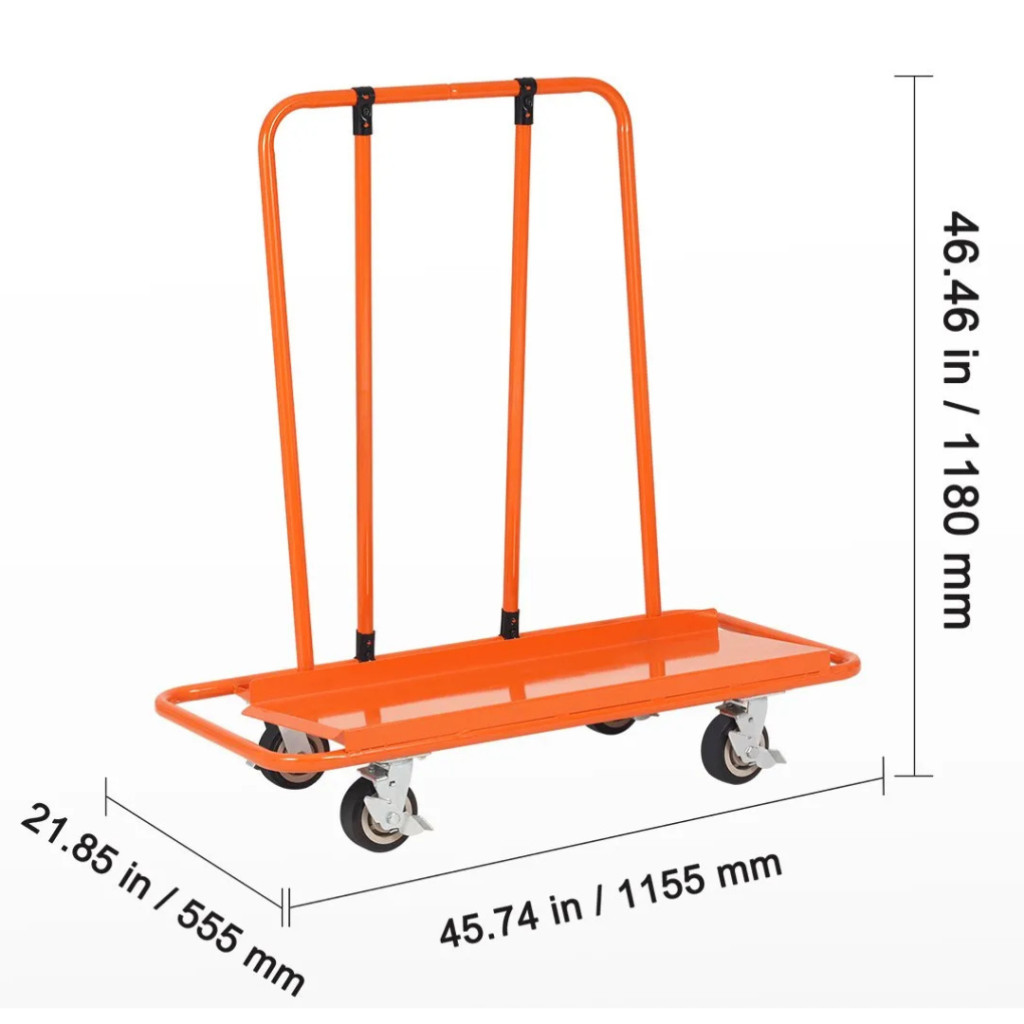 Lapszállító kocsi 1360 kg teherbírású, 115 x 55 cm-es acél szárazépítő anyagszállító kocsi