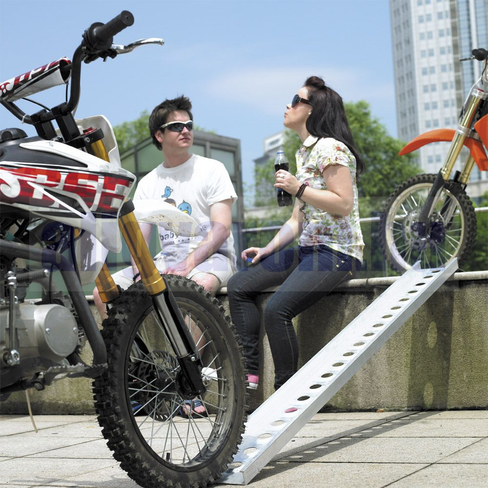 A felhajtórámpák segítenek a járművek vagy építőipari gépek gyors és biztonságos rakodásában. A stabil felhajtó rámpák könnyű és kiváló minőségű alumíniumból készülnek, és a széles, erős profilozású felhajtófelületeknek köszönhetően mindenütt tapadást biztosítanak, ahol nedves vagy csúszós a talaj. A fel- és lehajtás vagy a rakodás sokkal könnyebbé válik. A quadok, motorkerékpárok és hasonló járművek gyorsan és nagy erőfeszítés nélkül felpakolhatók egy pótkocsira vagy furgonra. A lépcsők vagy más akadályok könnyen leküzdhetők vele.