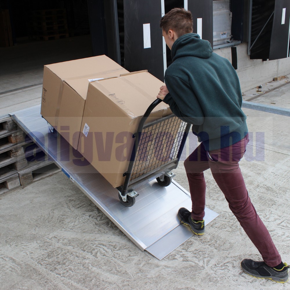 Ez az extra széles rámpa tökéletesen alkalmas a magasság leküzdésére, vagy pótkocsijának vagy szállítóeszközének rakodására.