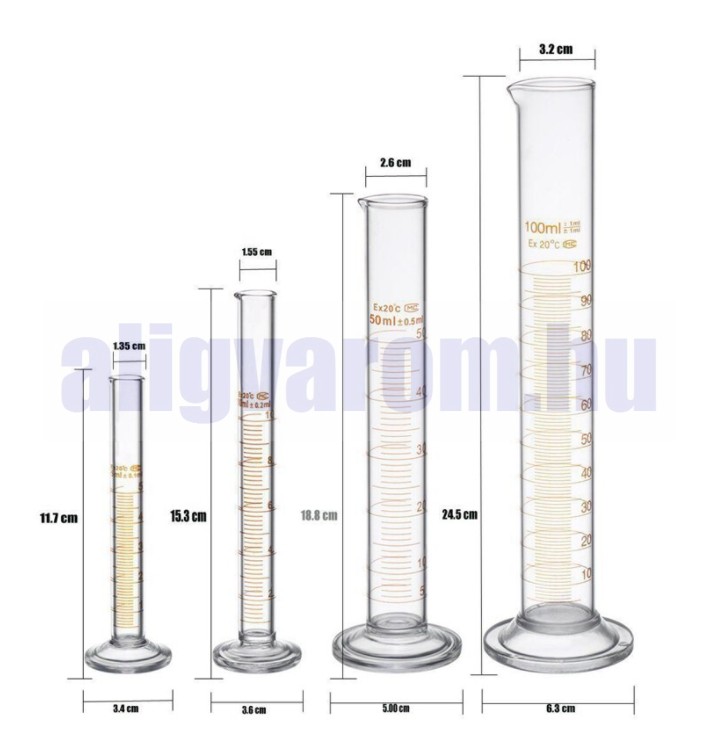 • A folyékony mennyiségének meghatározásához használatos mérőhengerek