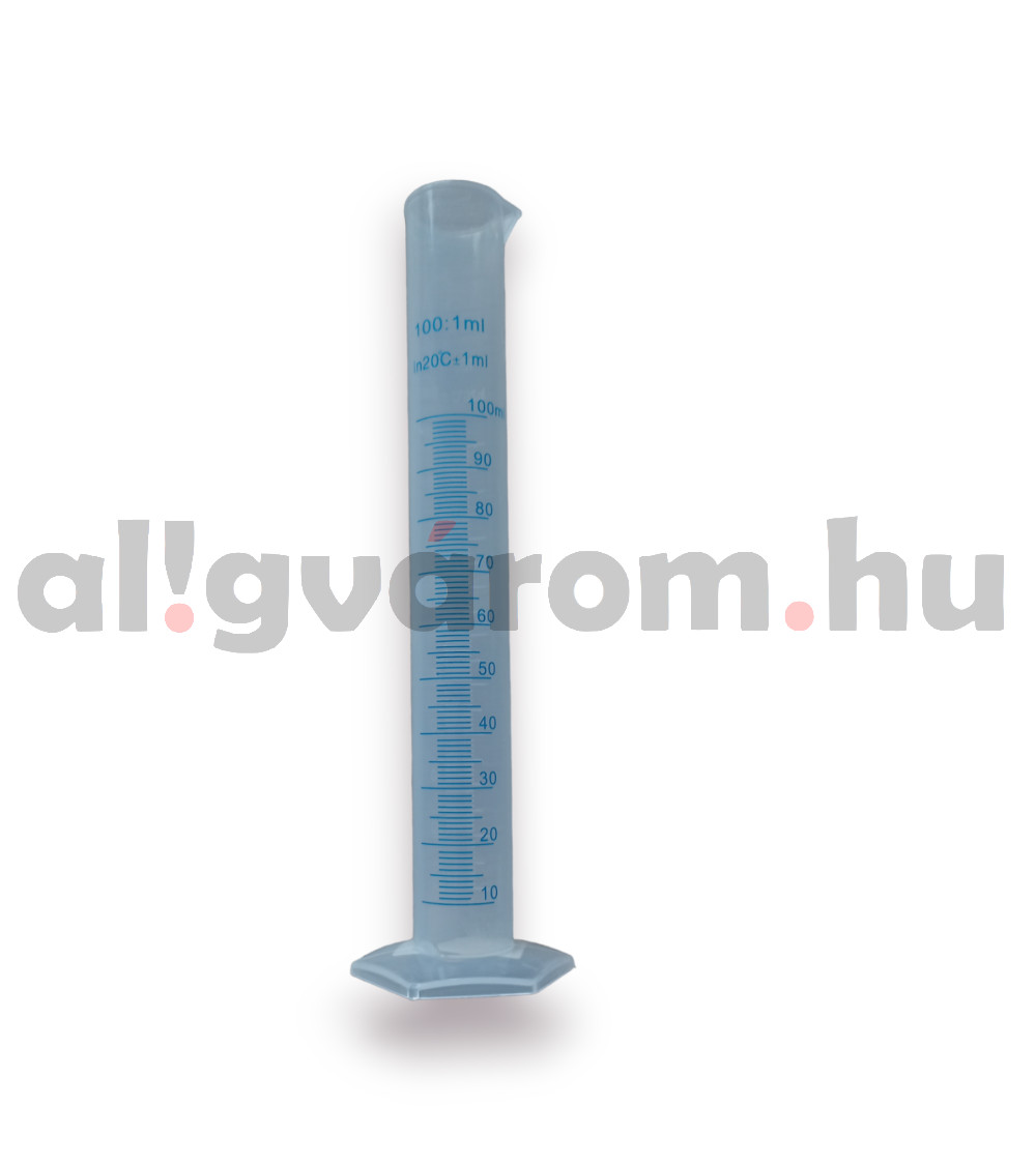 Műanyag mérőhenger 100 ml hőálló boroszilikát üvegből. Széles talppal, csőrős kiöntővel.