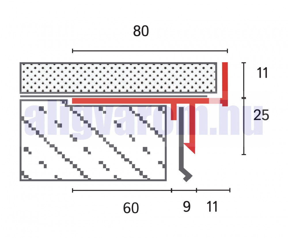 Függőleges záró magassága 11 mm, azaz legalább ilyen magas legyen a burkolat a ragasztóval együtt