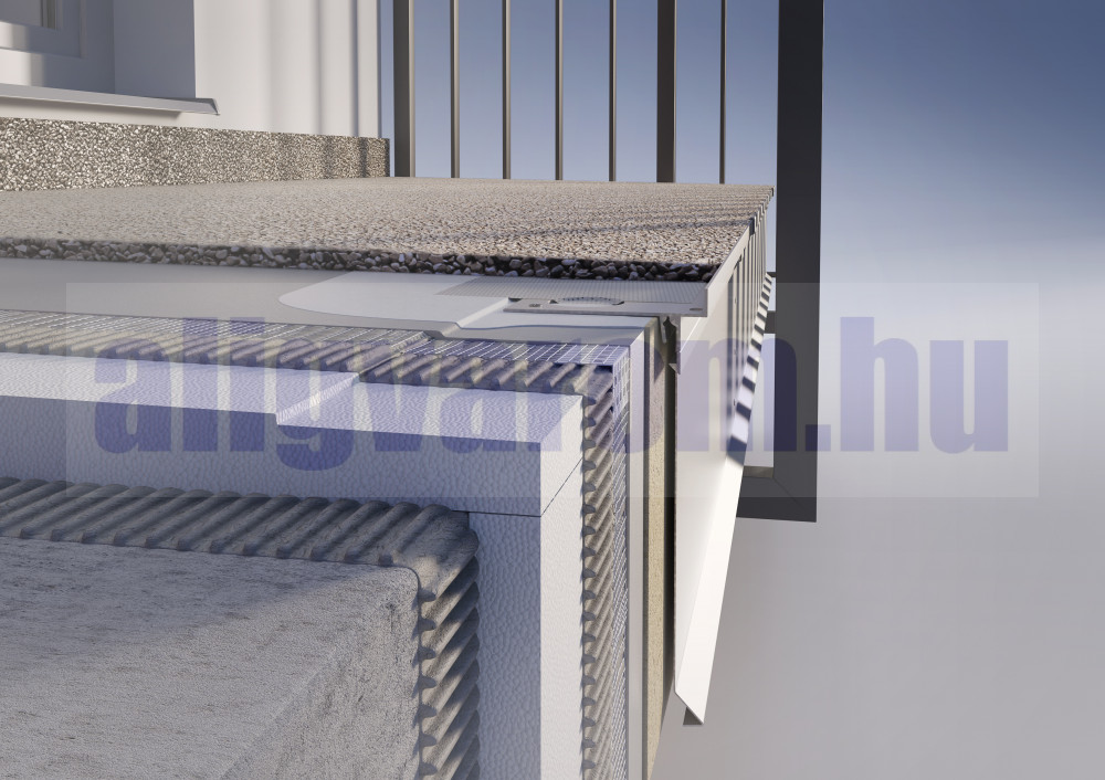 Profi termék, nem csak védi a padlólap szélét, levezeti a vizet, hanem még egy második alsó profil is illeszthető alá, amellyel még jobban megvédhető az oldalfal, vagy utólagos javításnál eltakarható a sérülés.