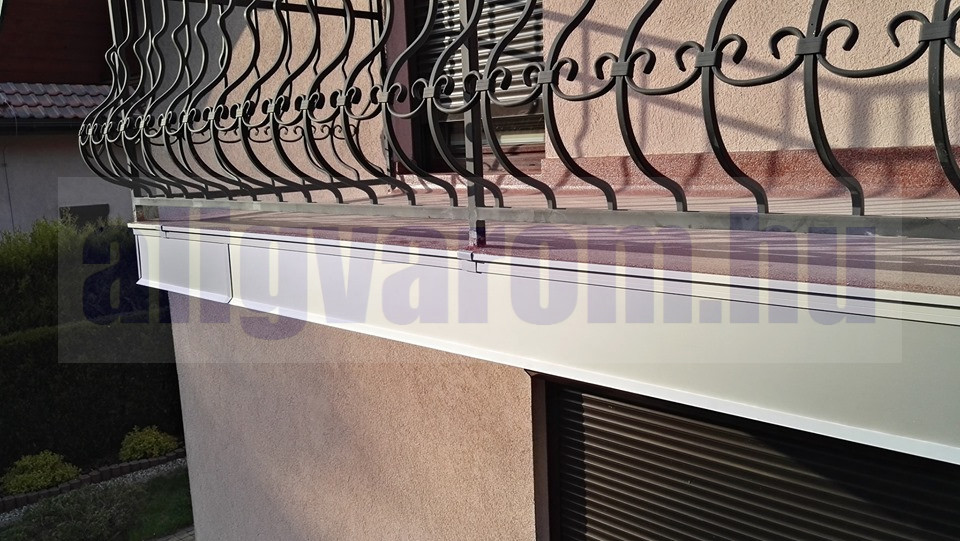 Lelógása: 25 mm, hosszabbítható a kölön vásárolható elemmel: https://www.aligvarom.hu/Erkelyszegely-Stone-takarolemez
