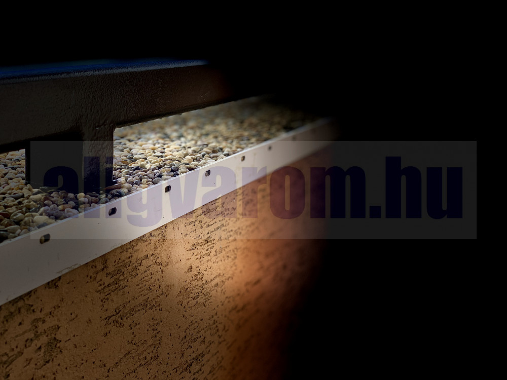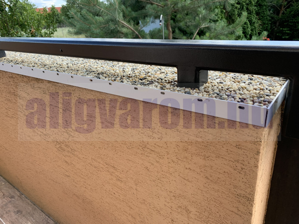 Az élvédő 13 mm magasan takarja kőszőnyeg szélét, lefelé pedig 40 mm a takarás, hasznos, ha nem elég szép az erkély vagy terasz oldala.