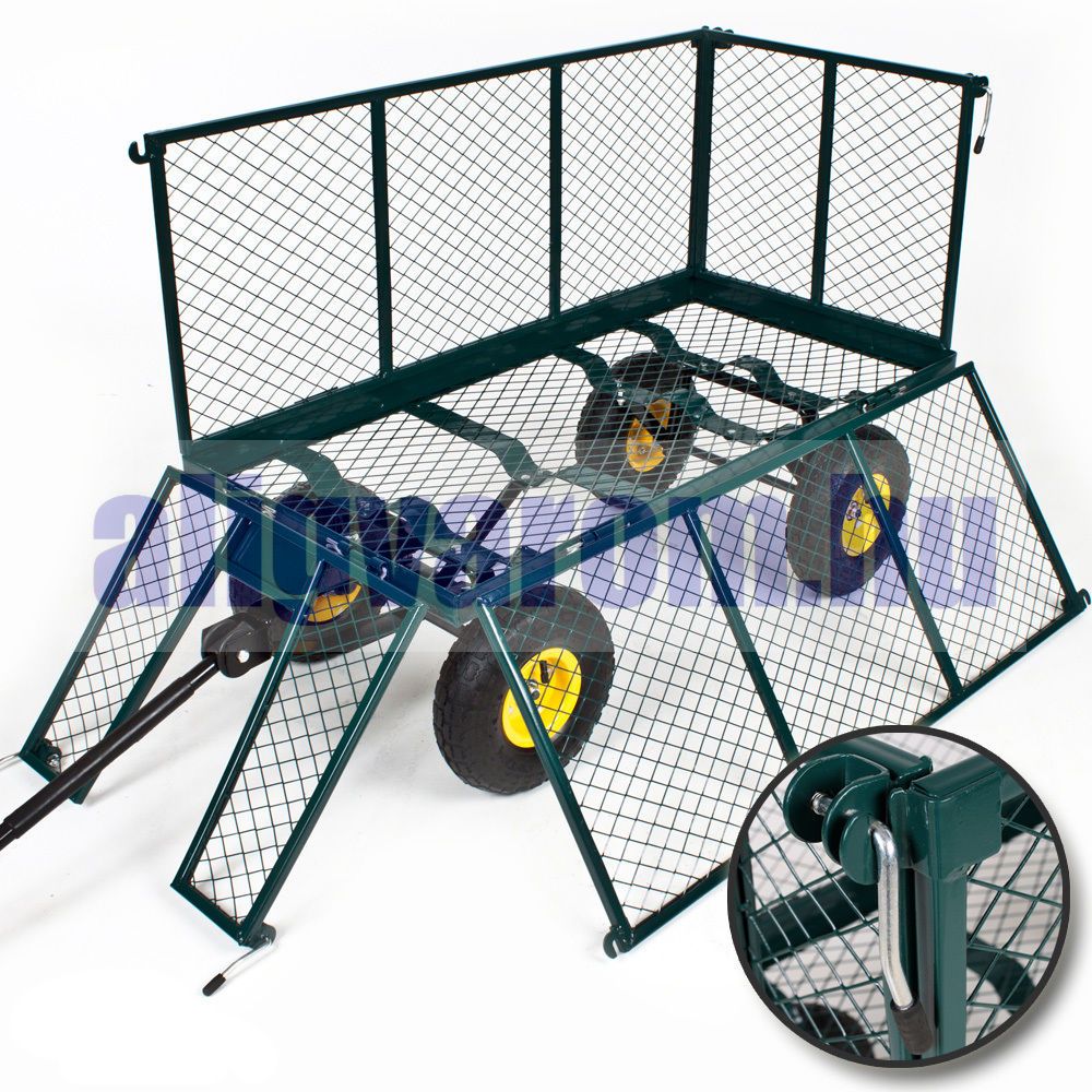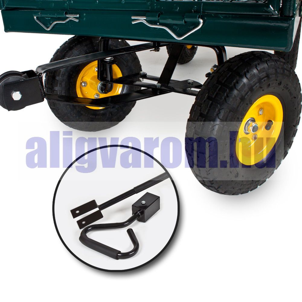 Szállítókocsi, húzható kézikocsi 550 kg teherbírás, lehajtható oldalú plató, levehető kar, géppel is húzható