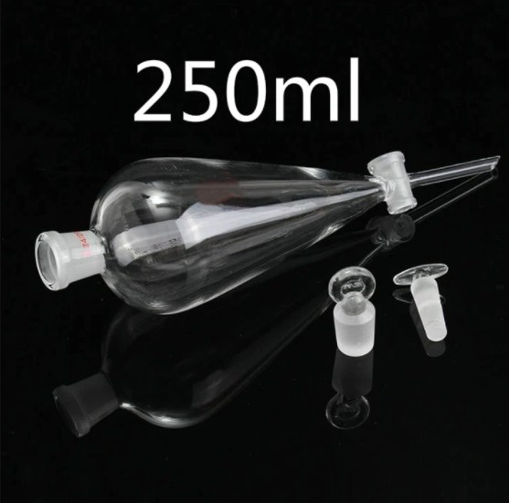 Körte alakú üveg leválasztó tölcsér üvegdugóval.