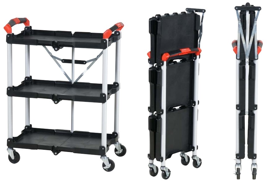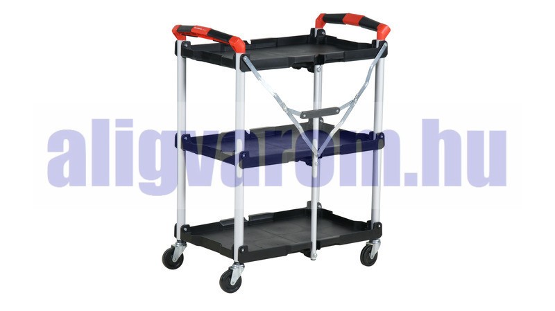Smart szervizkocsi - okos megoldás - összecsukható 3 szintes szerszámkocsi 75 kg teherbírással önbeálló fékezhető kerékkel