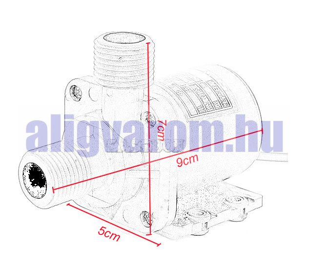24V 22W 800 l/h keringető szivattyú, pumpa IP68-vízmentes 1/2" szolár rendszerhez is 65 °C kenőszivattyú keringető hűtőszivattyú