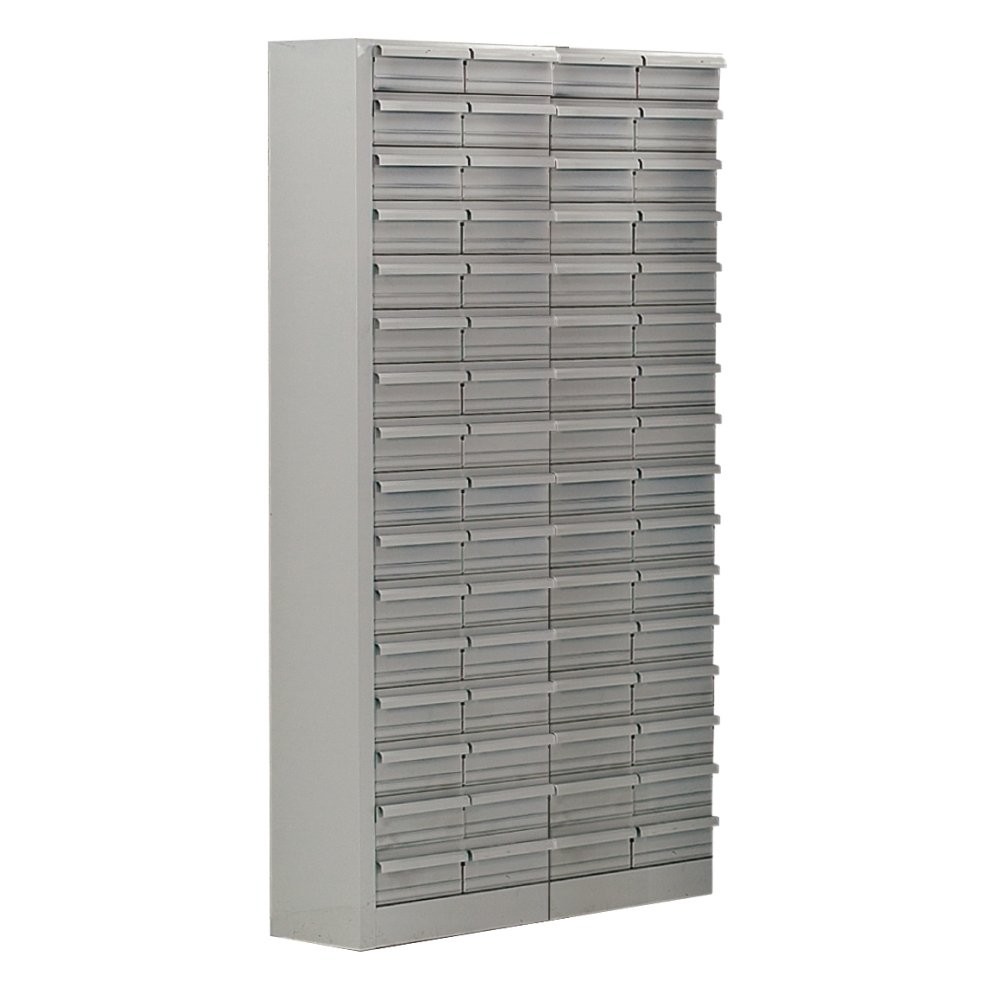 Acél alkatrésztároló fiókos szekrény rendkívül masszív szerkezet, 48 közepes méretű acél fiókkal ellátott. Alapfelszereltségként fiókonként egy acél osztóelem áll a rendelkezésre. A fiókok kialakításának köszönhetően 5 részre is oszthatóak igény szerint.