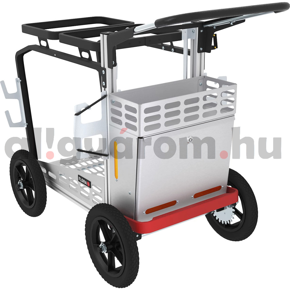 • Kéttengelyes, hátsó tengelyen rögzítőfékkel, így ideális kültéri takarításhoz