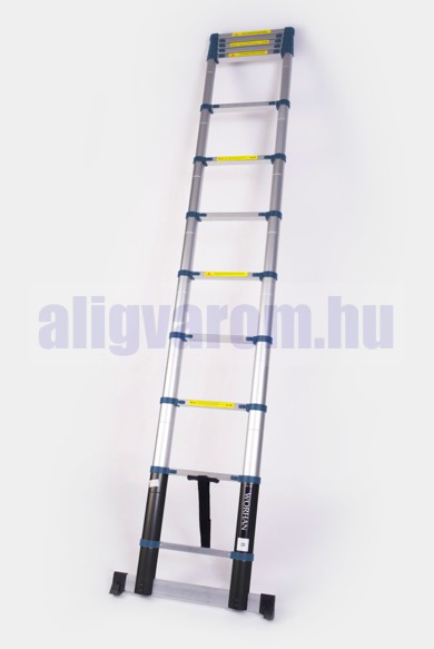 3,2 m magas, teleszkópos alumínium létra 74 cm-re összecsukható. Szélesített támasztólábbal ellátott kivitel