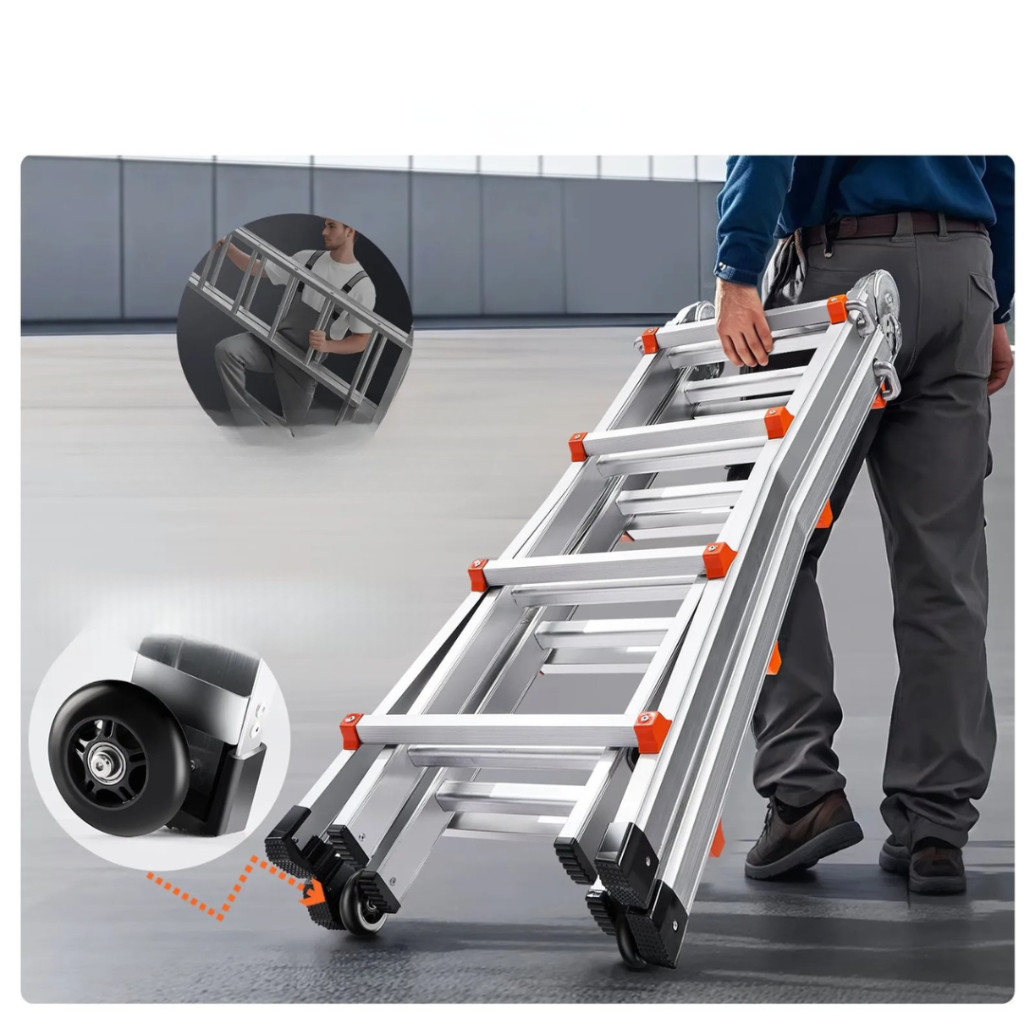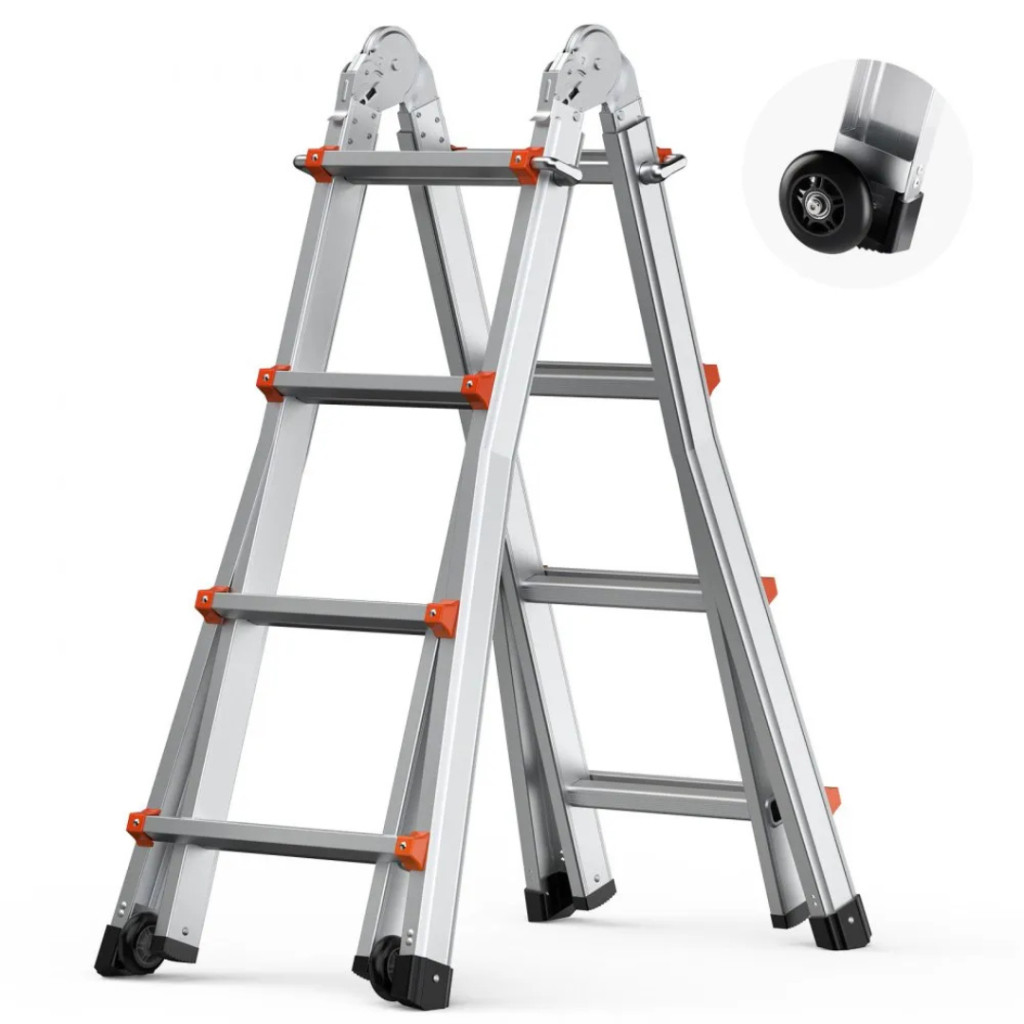 Az alsó részre szerelt dupla kerekek segítségével a létra egy kézzel is könnyedén mozgatható. Nem kell felemelnie, egyszerűen gördítheti egyik helyről a másikra, így kényelmesebb a használata, mint a hagyományos létráknak.
