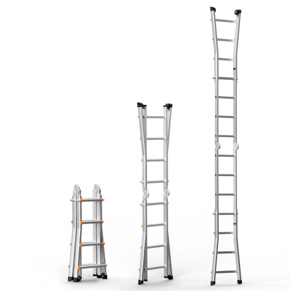 A teleszkópos lábak akár 180°-ban állíthatók, így a létra többféle beállításban használható. Teljesen kihúzva a magassága 4 m, így ideális padlásfeljárókhoz, karbantartási munkákhoz, takarításhoz vagy kisebb építési feladatokhoz.