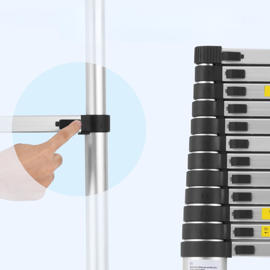 A fokok mindegyike külön biztonsági reteszelő kapcsolóval van ellátva, amely lehetővé teszi a létra gyors és biztonságos magasságbeállítását. Így mindig a megfelelő méretet használhatja az adott feladathoz.