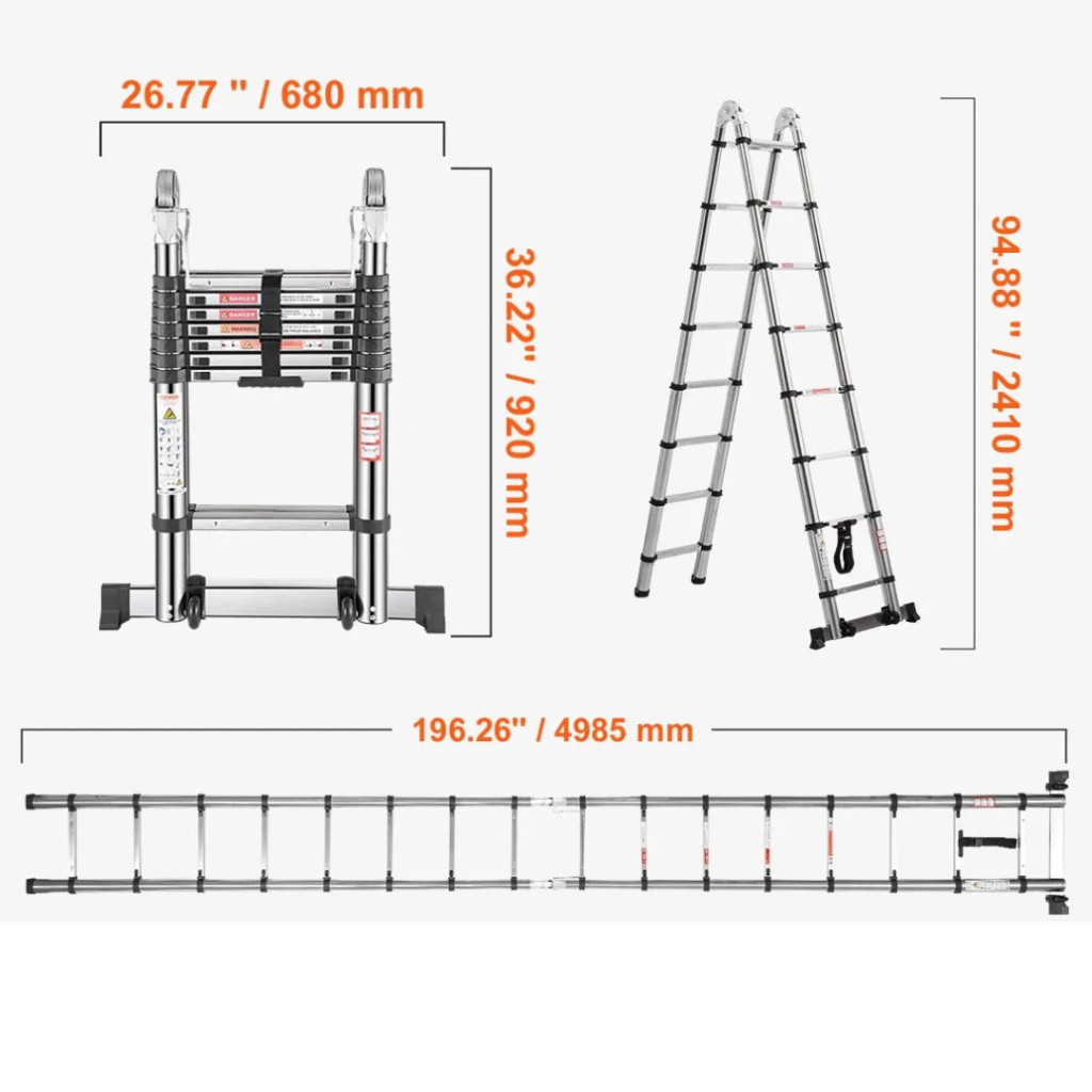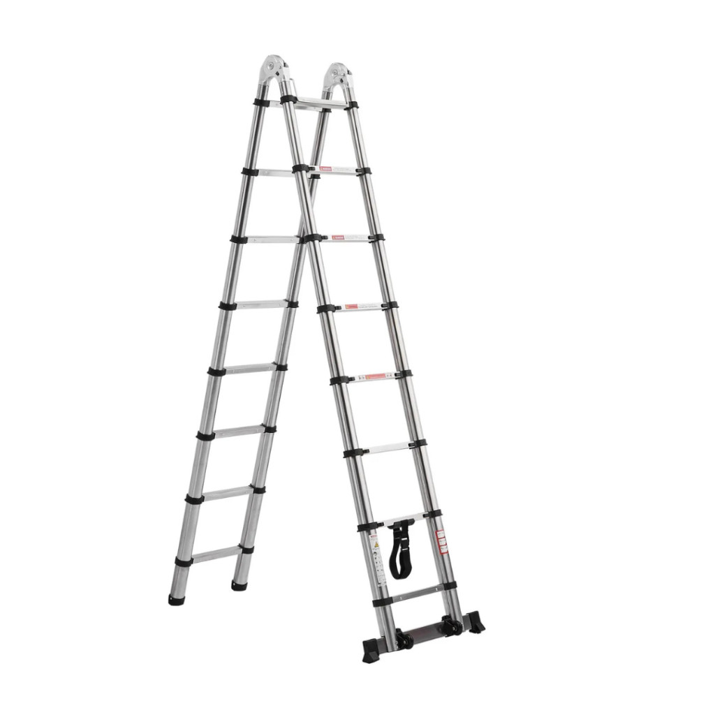 Teleszkópos létra 4985 mm összecsukható A-keretes rozsdamentes acél létra