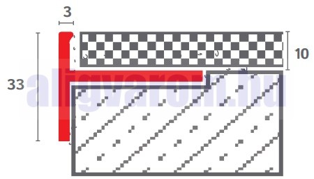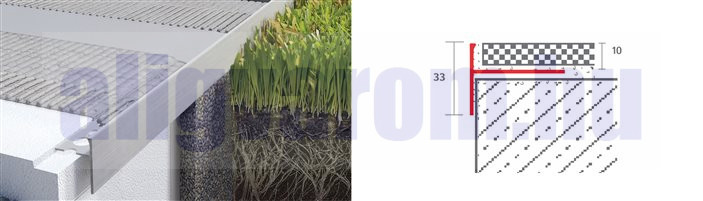 10 mm takarja el a lap oldalát, 23 mm lelógással bíztosítja, hogy a víz oldalról semmiképpen ne juthasson be a padlólap alá, és elrejtse a vakolat hibáját vagy a szigetelő anyagot.