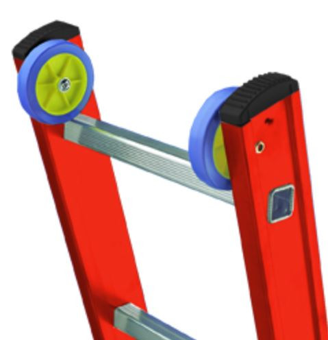 Üvegszálas szigetelt létra, kombinálható kétrészes 2x16 fok, 4,6m magas, csúszókerekekkel