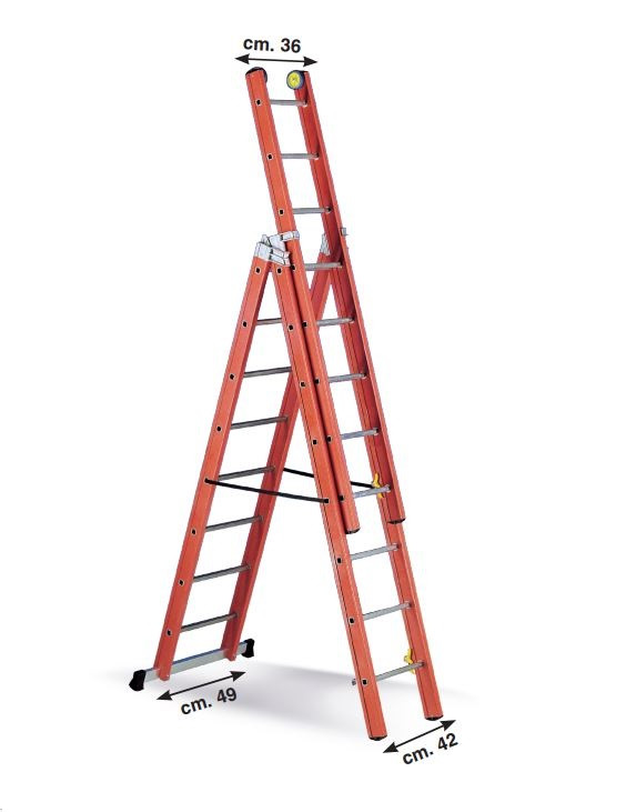 Üvegszálas szigetelt létra, kombinálható háromrészes 3x12 fok, 3,5m magas, csúszókerekekkel