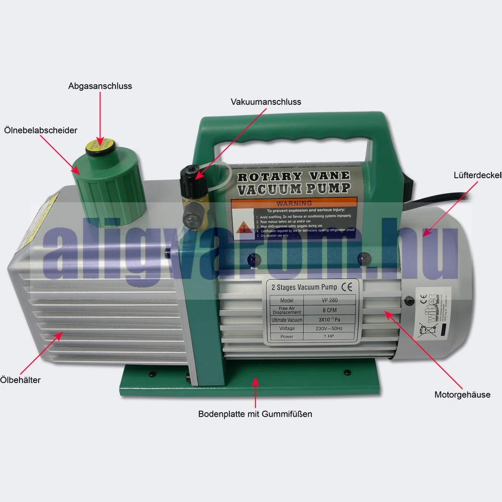 2 lépcsős vákuumszivattyú nagyteljesítményű 224 liter/perc  230V 800W  0,000003 Bar 3 Pa 8 cfm