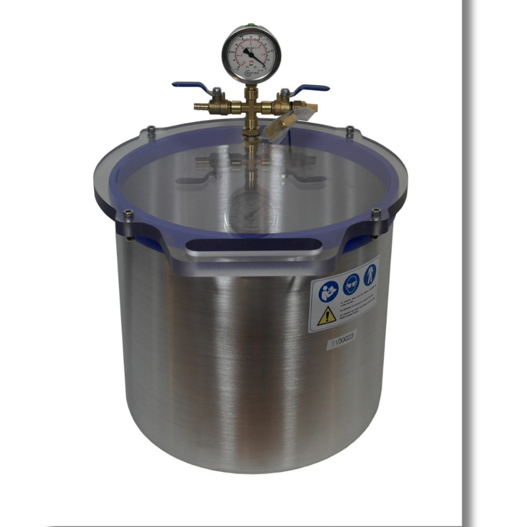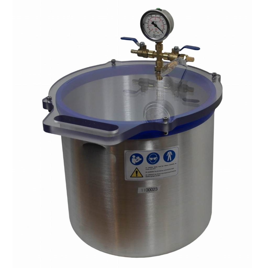 Vákuumtartály, vákuumkamra 20 literes alumínium, polikarbonát tetővel