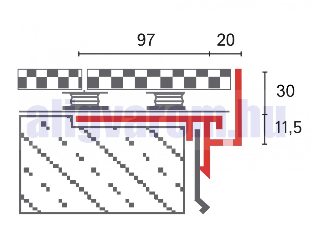 Függőleges záró magassága 30 mm növelhető az RT állítható toldólemezzel 70 mm-ig