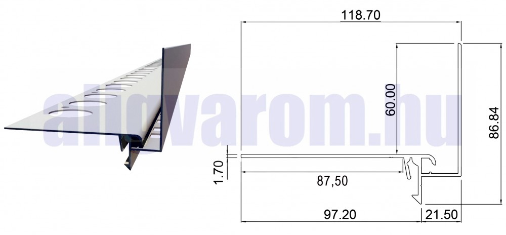 • Optimális méretek: A 2,5 méteres hossz minimalizálja az illesztések számát, a 22 mm-es túlnyúlás és a 87 mm-es beépítési mélység pedig professzionális kialakítást tesz lehetővé.