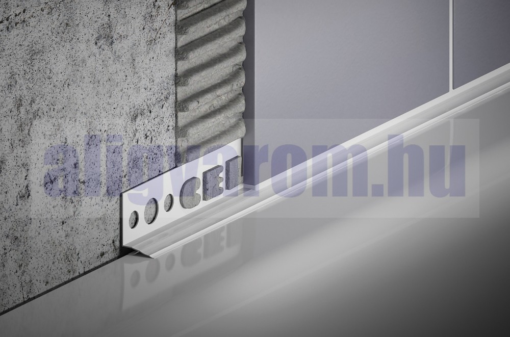 Ezt a profilt burkolás előtt kell a csempe alá helyezni a kád, vagy zuhanytálca peremének magasságában.