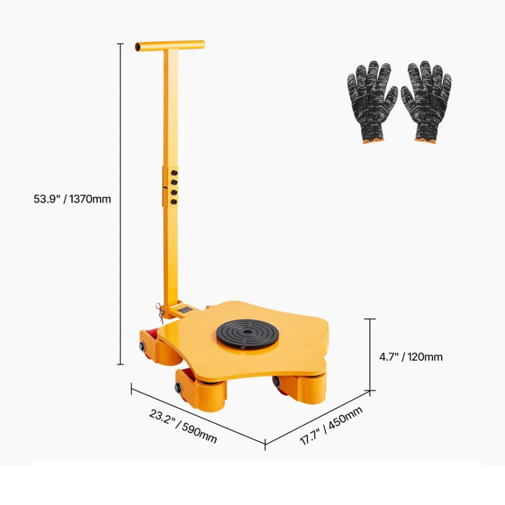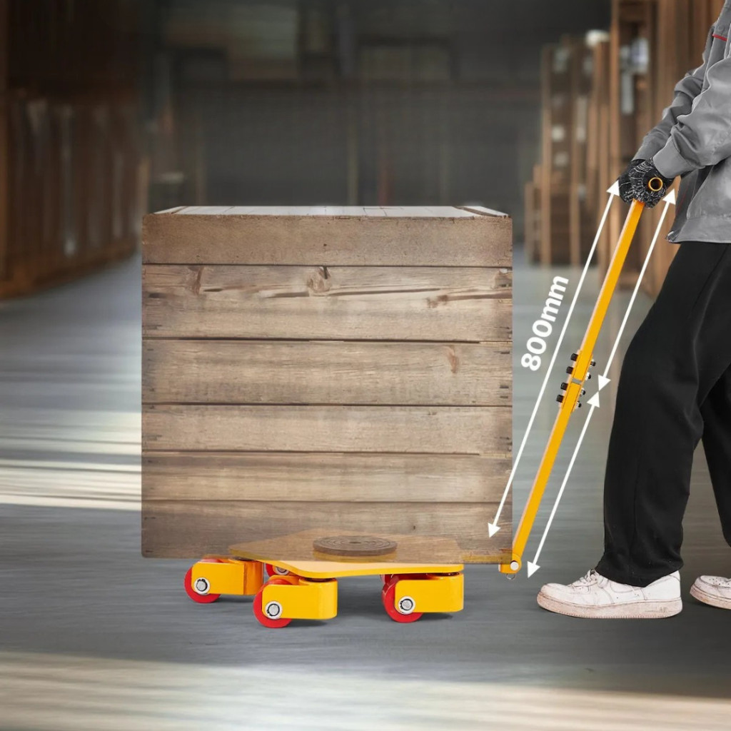 A 4 tonna teherbírású bútorszállító kocsi tökéletes választás, ha nehéz gépeket, ipari berendezéseket vagy nagy méretű bútorokat kell biztonságosan és hatékonyan mozgatni. A 4 tonnás teherbírás, a 360°-ban forgatható nagy tányér és a többkerekes stabilitási kialakítás garantálja a sima és biztonságos szállítást raktárban, műhelyben vagy akár építkezésen.