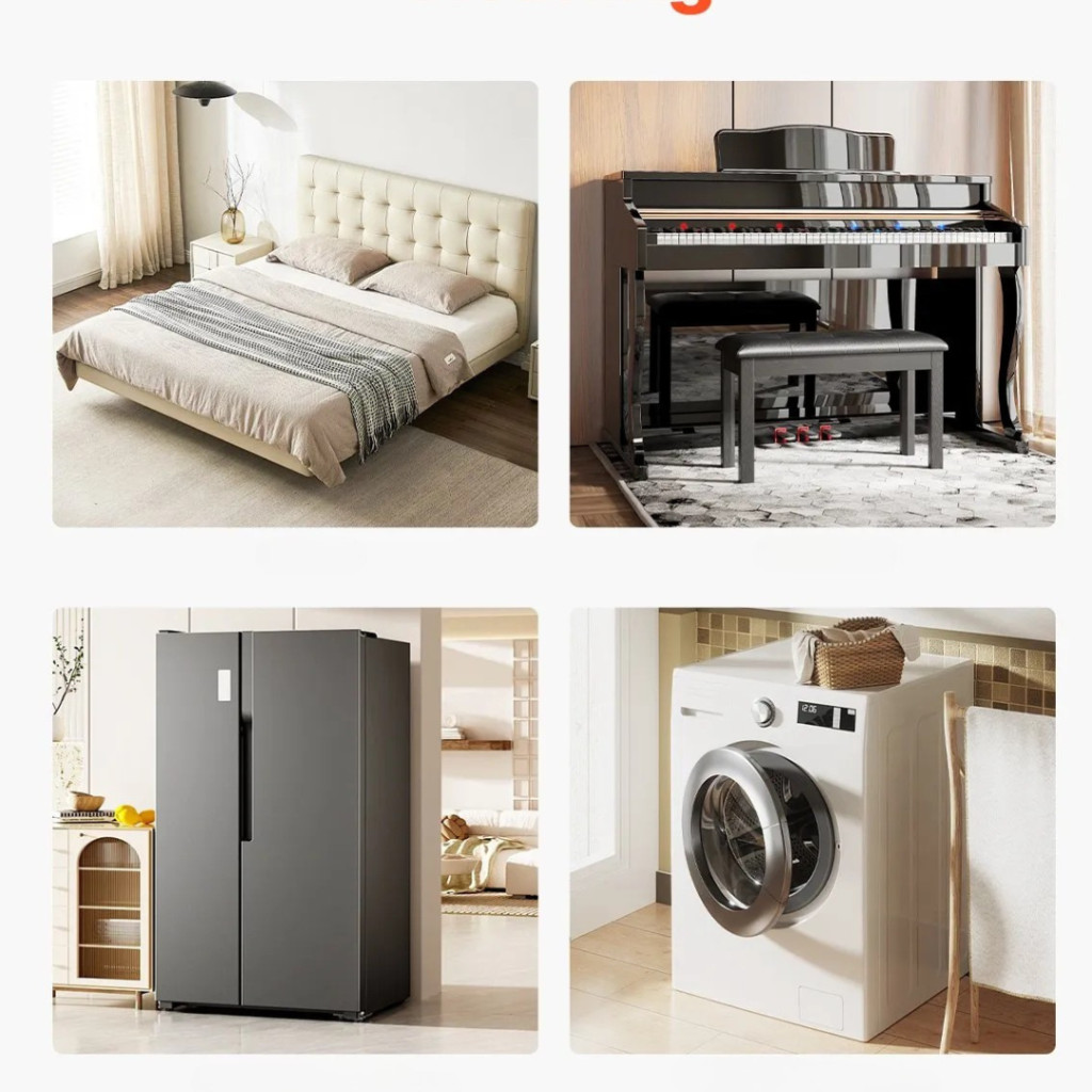 A bútorszállító kocsi készlet ideális választás mindazoknak, akik gyakran szembesülnek nehéz bútorok vagy háztartási gépek mozgatásával. A négy darabból álló szett együttesen akár 1575 kg teherbírást biztosít, így könnyedén mozgathat vele kanapékat, szekrényeket, hűtőszekrényeket vagy más nagy tárgyakat.