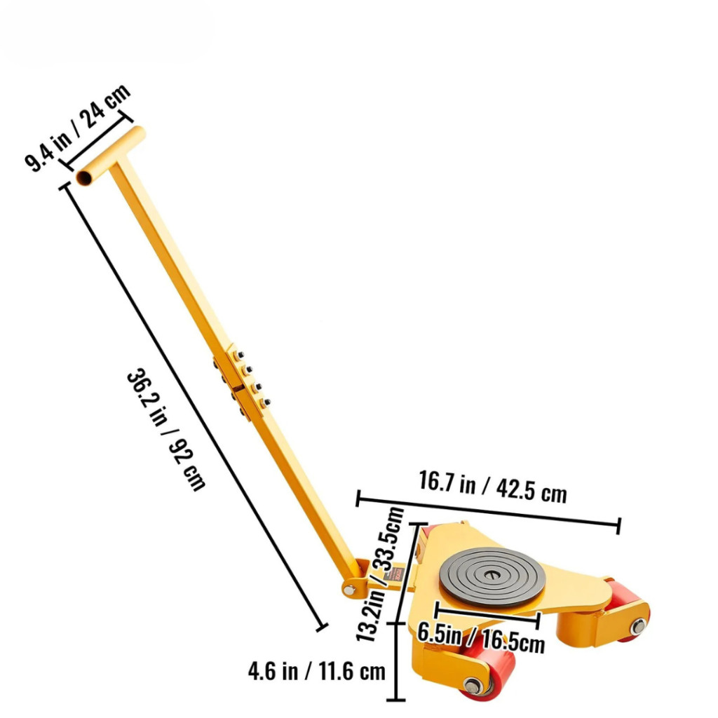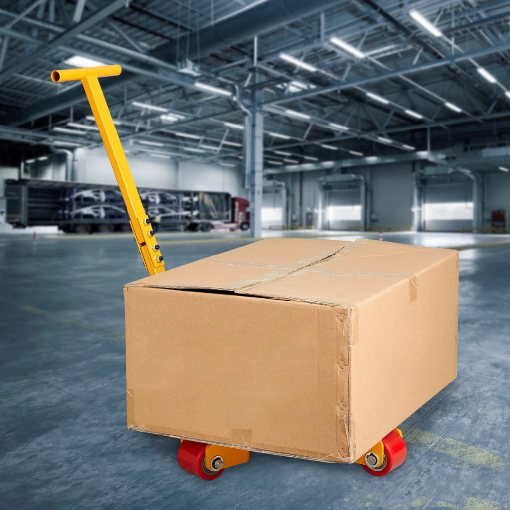A bútorszállító kocsi erős és megbízható megoldást kínál nagy súlyú gépek, ipari berendezések és nehéz tárgyak biztonságos mozgatására. A masszív szénacél konstrukció, a hosszú fogantyú és a 360°-ban forgatható PU-kerekek garantálják a stabilitást, a könnyű irányíthatóságot és a biztonságos szállítást.