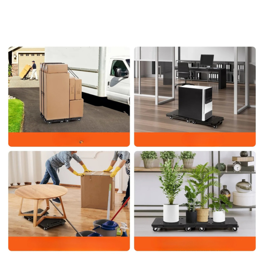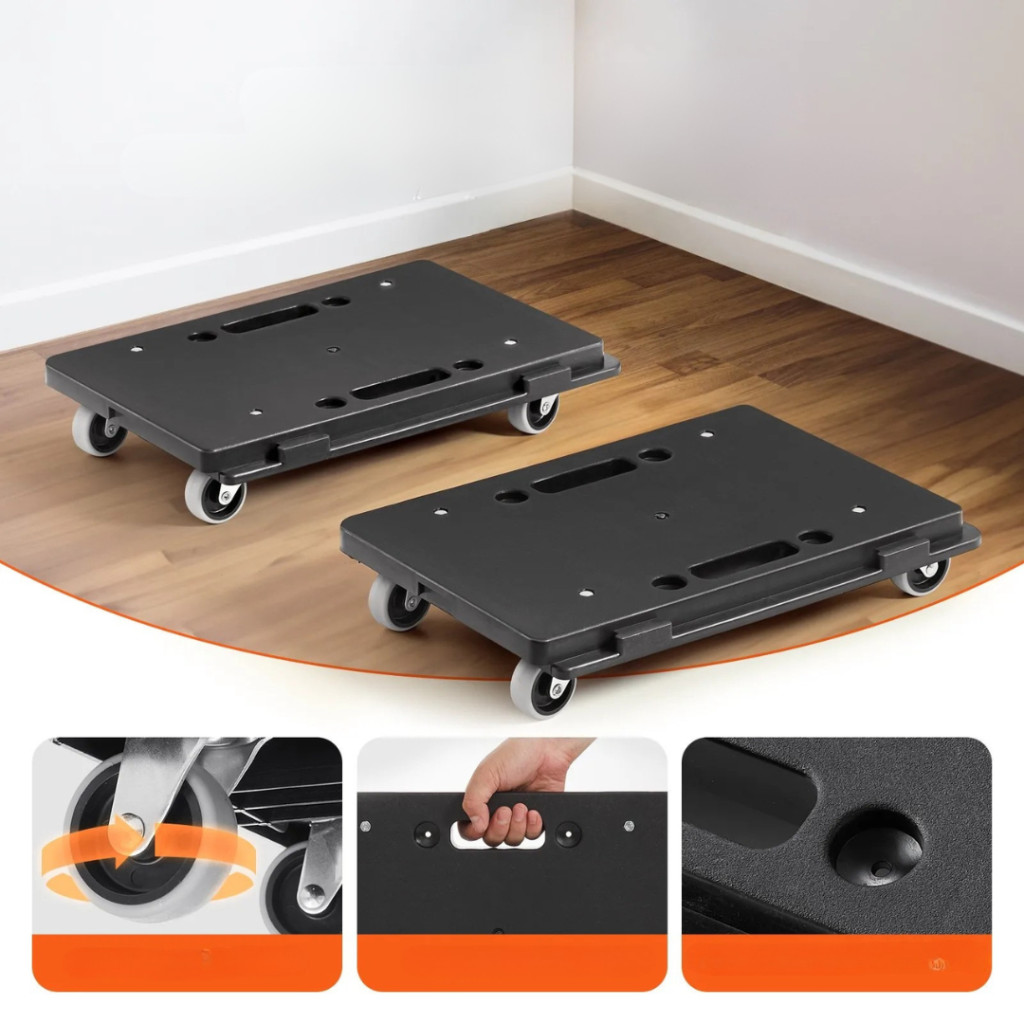 Mindegyik bútorroller 4 db duplagolyós, 360°-ban forgó PU kerékkel rendelkezik, amelyek kopásállóak, csendesek és nem karcolják a padlót. A mellékelt gumipókokkal a rakomány stabilan rögzíthető, így szállítás közben is biztonságban marad.