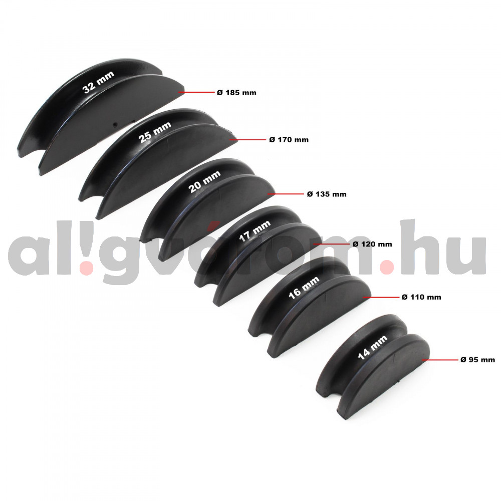 A különböző présdaraboknak köszönhetően 14 mm és 32 mm közötti vastagságú csövek hajlíthatók a kívánt szögben. A hajlítóberendezés és a présdarabok egy műanyag szerszámtáskában érkeznek. Ezáltal a csőhajlító gép szállíthatóvá és mobilissá válik.