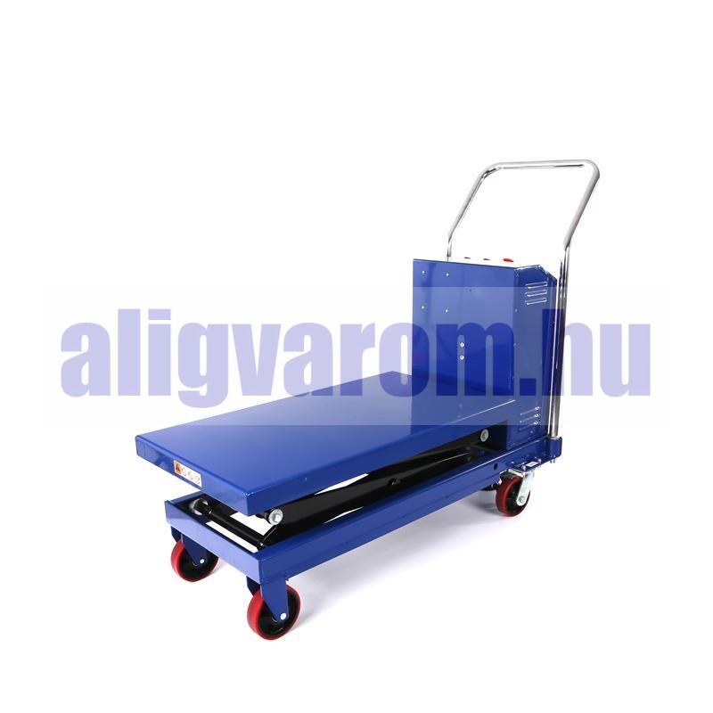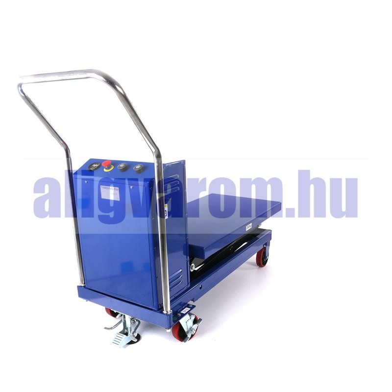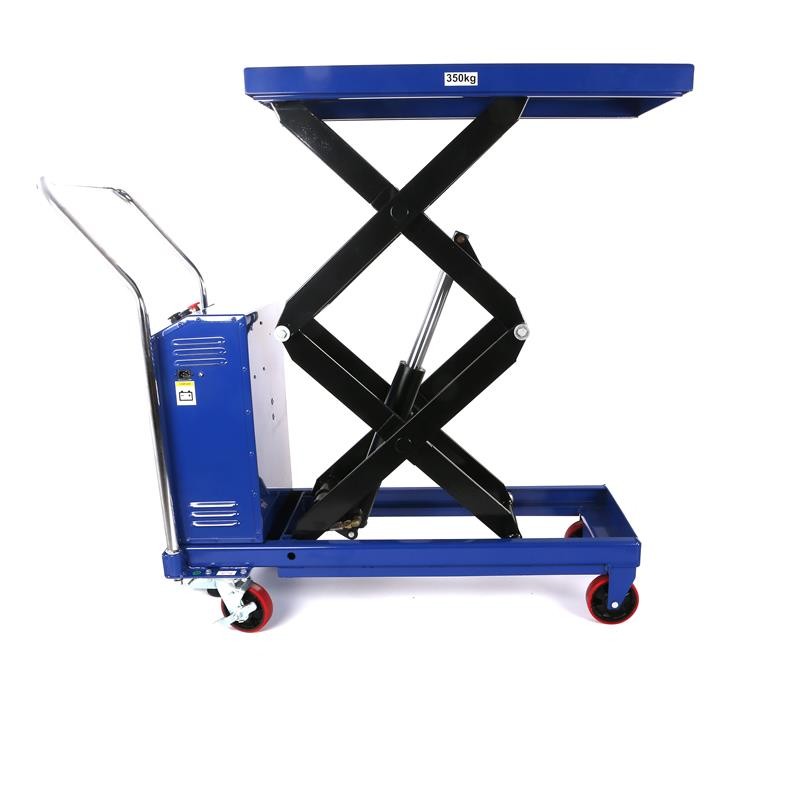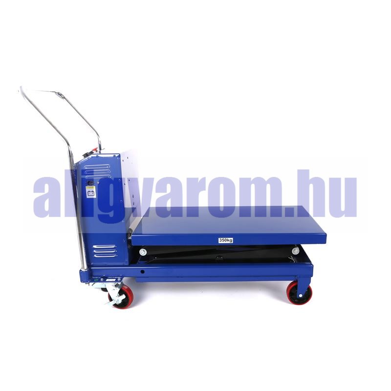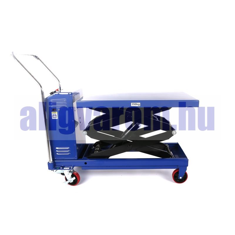 Ollós elektromos extra magasemelésű emelőasztal kézi szállító és hidraulikus emelő kocsi 350 kg teherbírás, akkumulátoros emelés, mobil emelő asztal ollósemelő