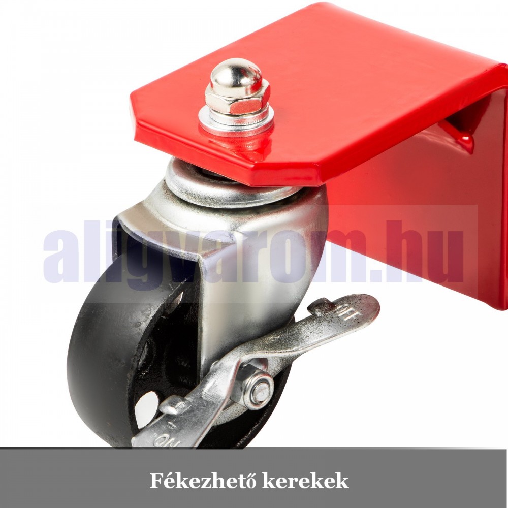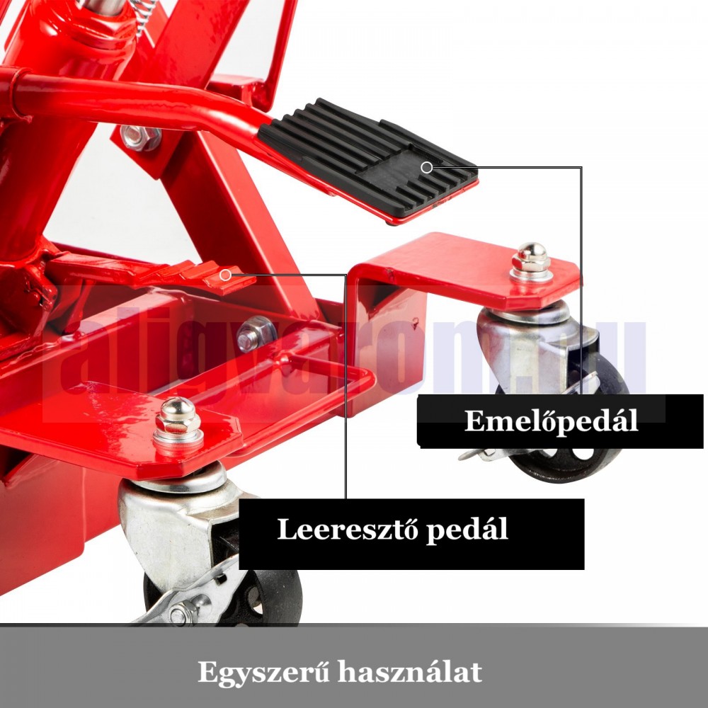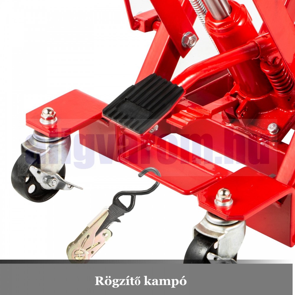 A motoros emelő nagy teherbírású acélból készült. A kivitel piros bevonatú és olajálló.