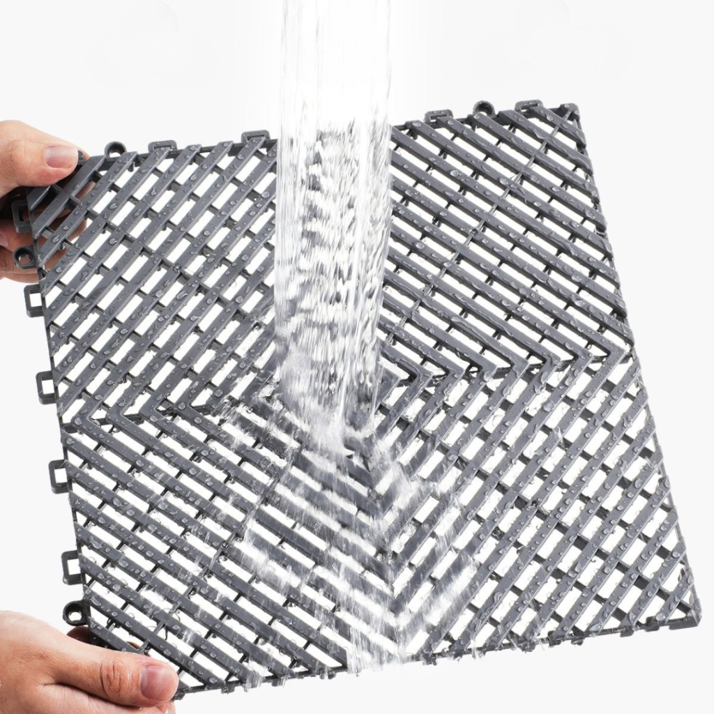Vízelvezető szőnyeg 40 darabos szürke moduláris garázs padlólap 31x31 cm összepattintható műanyag burkolat