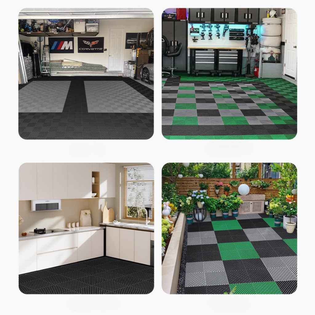 A lapok különböző színekben is elérhetők, így lehetőség van egyedi mintázatok vagy zónák kialakítására, például parkolóhely, szervizterület vagy mosózóna elkülönítésére.
