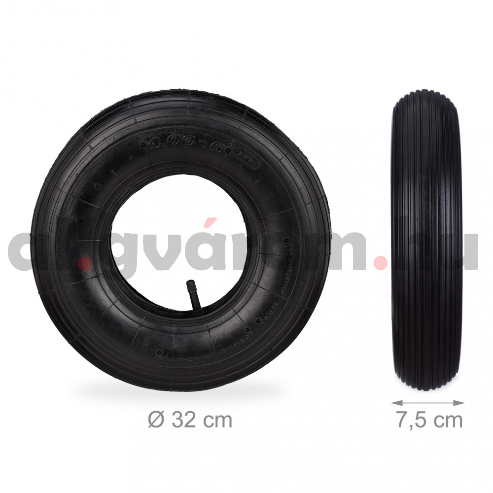 Ø320x75 mm Pótkerék alkatrész gumi belsővel és külső gumi borítással 2 pár 4.00-6" kézikocsi, fűnyíró, kistraktor, kiskocsi pótkerék készlet