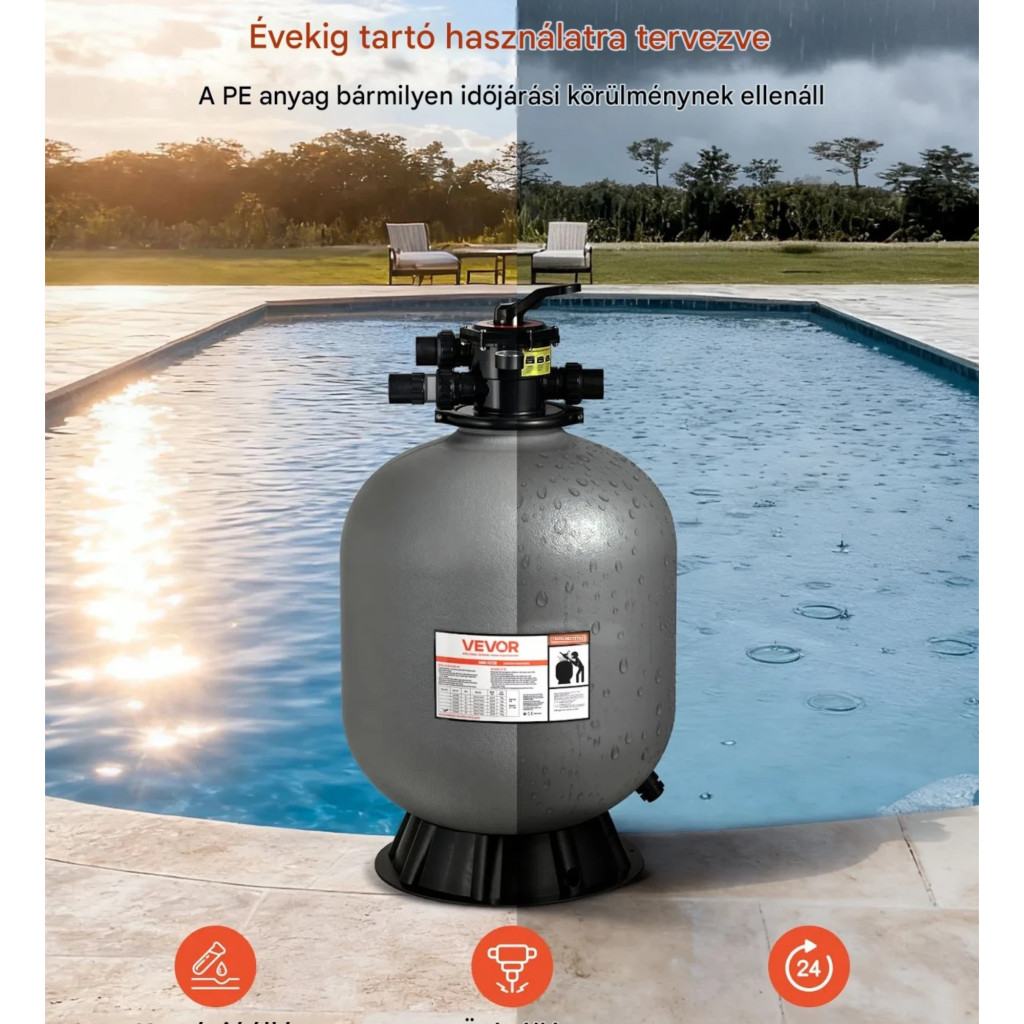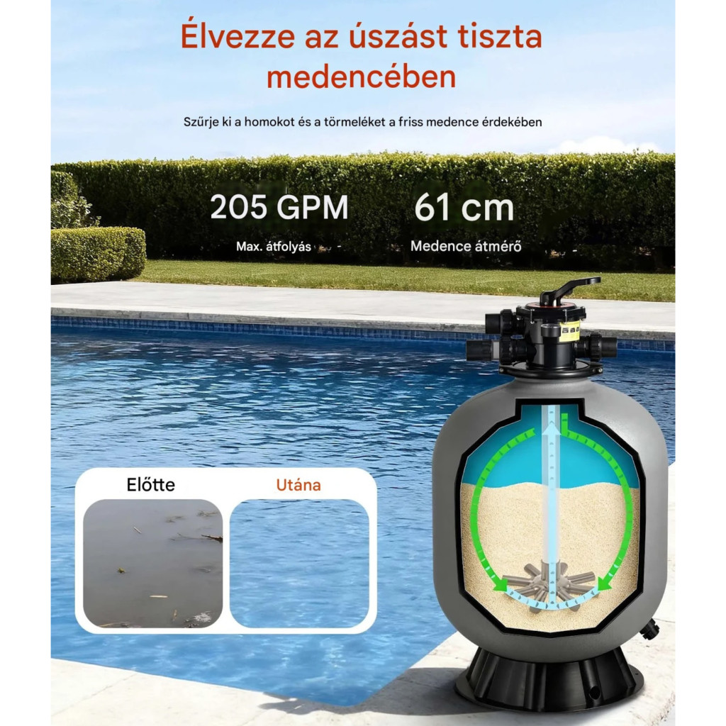Homokszűrős vízforgató 600 mm tartállyal nagy teljesítményű medence szűrő 246 L/perc kapacitással