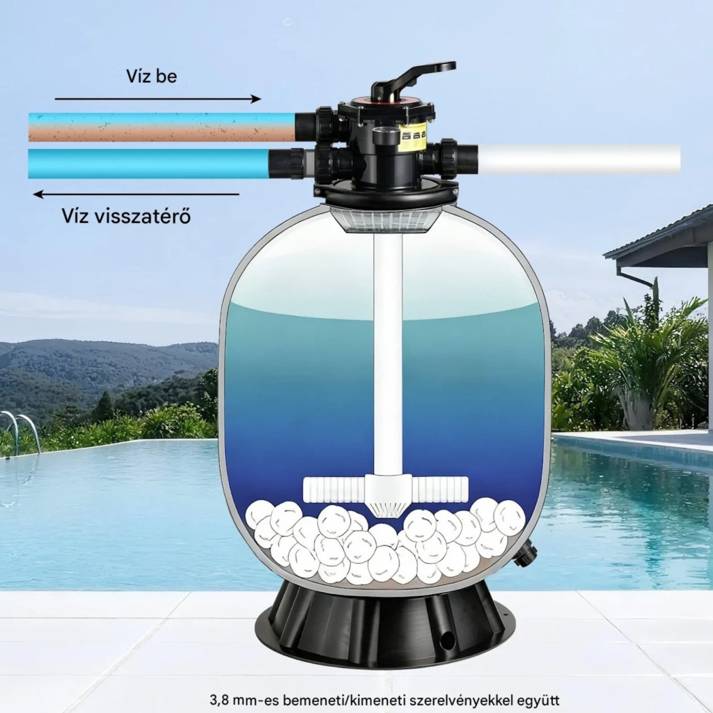A homokszűrő medencéhez folyamatosan biztosítja a tiszta vizet, miközben minimális karbantartást igényel. Így Ön több időt tölthet pihenéssel, és kevesebbet a medence tisztításával.