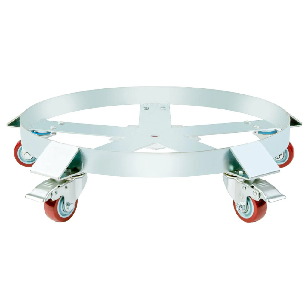 A szállítókocsi 5 univerzális kerékkel van felszerelve, amelyek közül kettő fékezhető. Ez lehetővé teszi a hordó biztonságos rögzítését és az irány könnyű változtatását még szűk helyeken is. A csúszásgátló szárnyak gondoskodnak a stabilitásról, minimalizálva a felborulás és a kifolyás kockázatát.