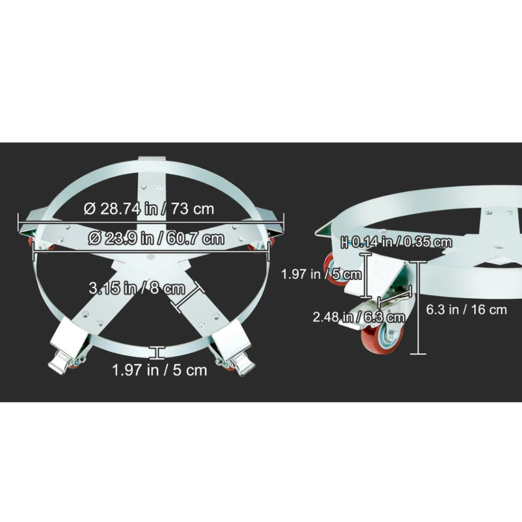 Hordószállító 250 liter acél hordógörgő 5 kerékkel 567 kg teherbírású