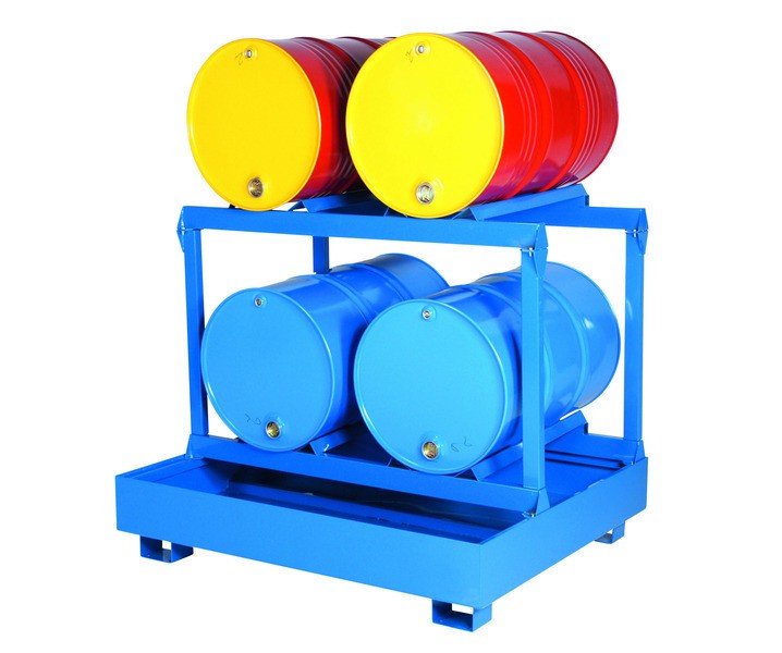 A hordótartó és hordótároló állványt kifejezetten úgy tervezték, hogy 4 db max. 200 literes fekvő hordót vagy azokhoz hasonló méretű tartályt biztonságosan és hatékonyan tároljon. Az erős fémszerkezet és a kármentő tálca gondoskodik a környezetvédelemről és a tiszta munkaterületről.