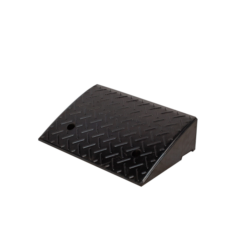 Gumiból készült fekete autóküszöb rámpa, amelyeket útszéli szegélyek leküzdésére, vagy bejáratokhoz használható.