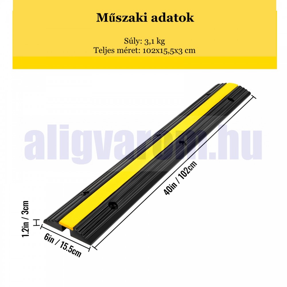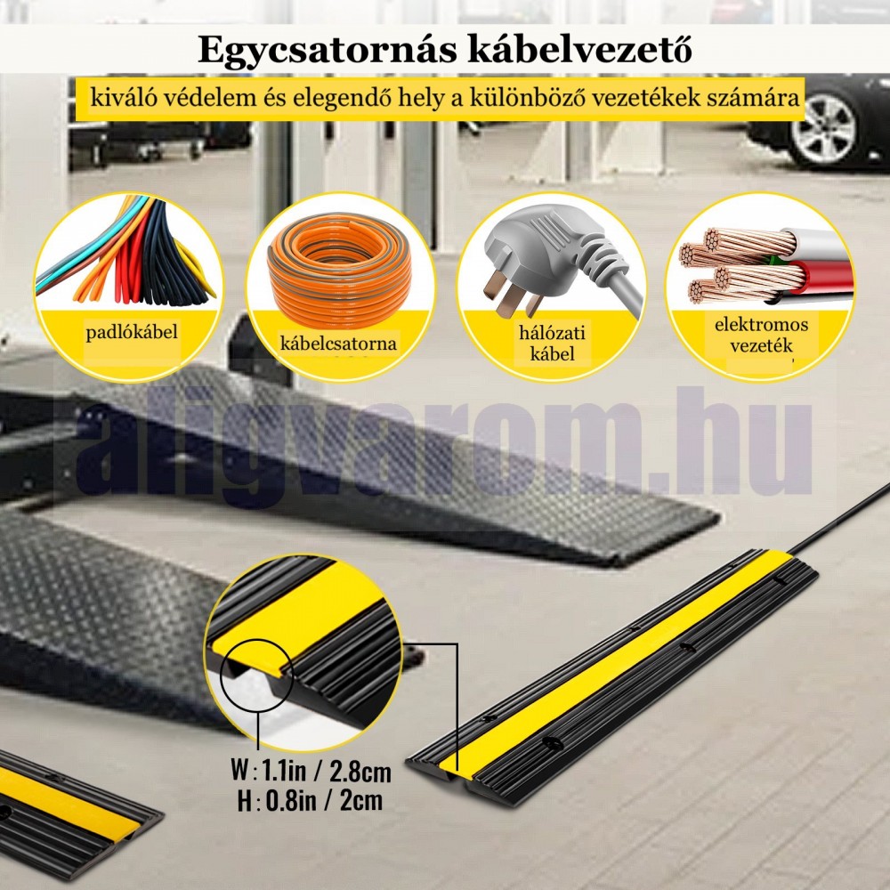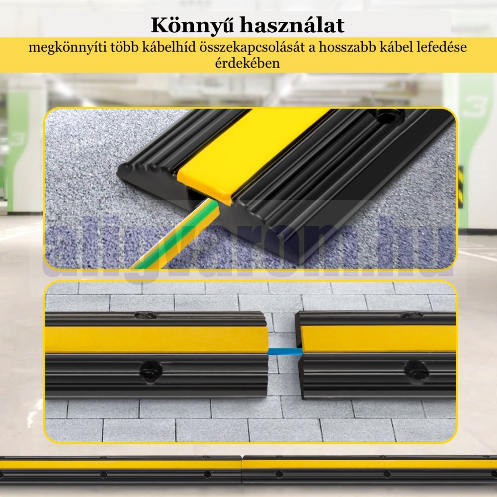 A hagyományos fekete-sárga szín jobb láthatóságot biztosít éjszaka és gyengén megvilágított környezetben. A túlfutásvédelem egyedi kialakítású, amely felhívja a járókelők és az autósok figyelmét, és lassításra készteti őket. A több mint 8164 kg teherbírás biztosítja, hogy a kábelvédő fölött úgy haladjon át autójával, hogy nem zavarja a benne futó kábeleket.