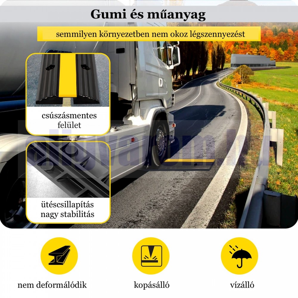 Kábelvédő burkolatunk ipari minőségű gumiból és PVC-burkolatból készül, amely vízálló, kopásálló és nem deformálódik a hosszú élettartam biztosítása érdekében. Texturált csíkokkal ellátott a felületen, így garantálva a csúszásmentességet.