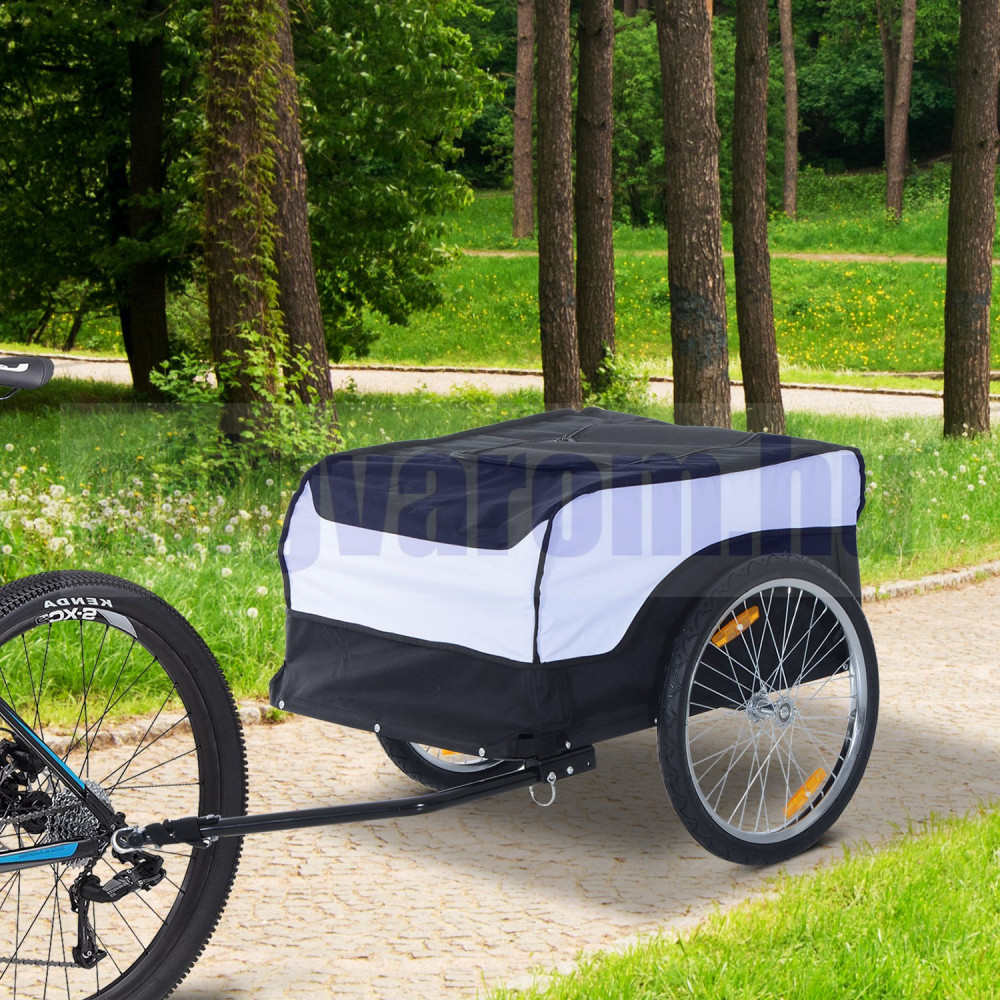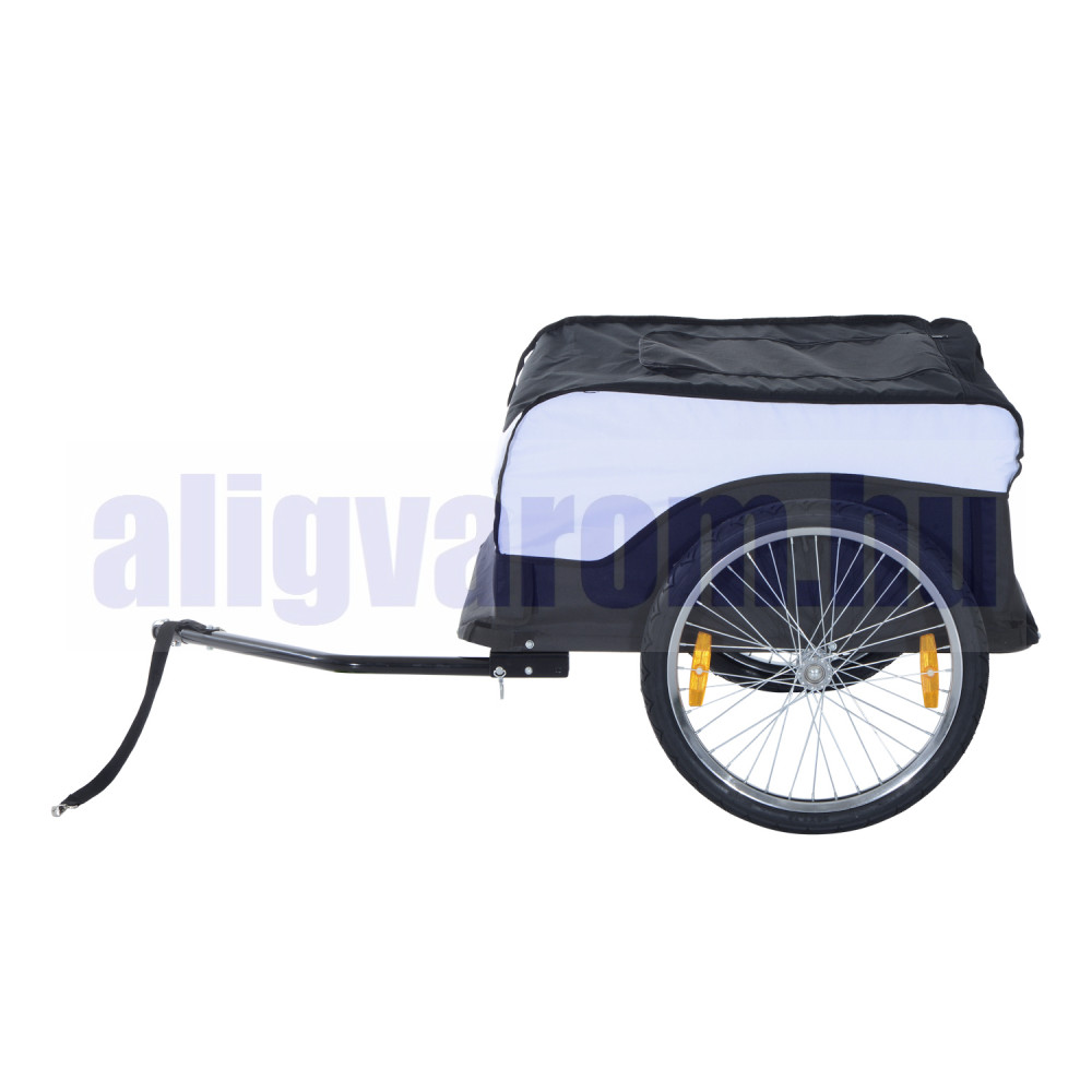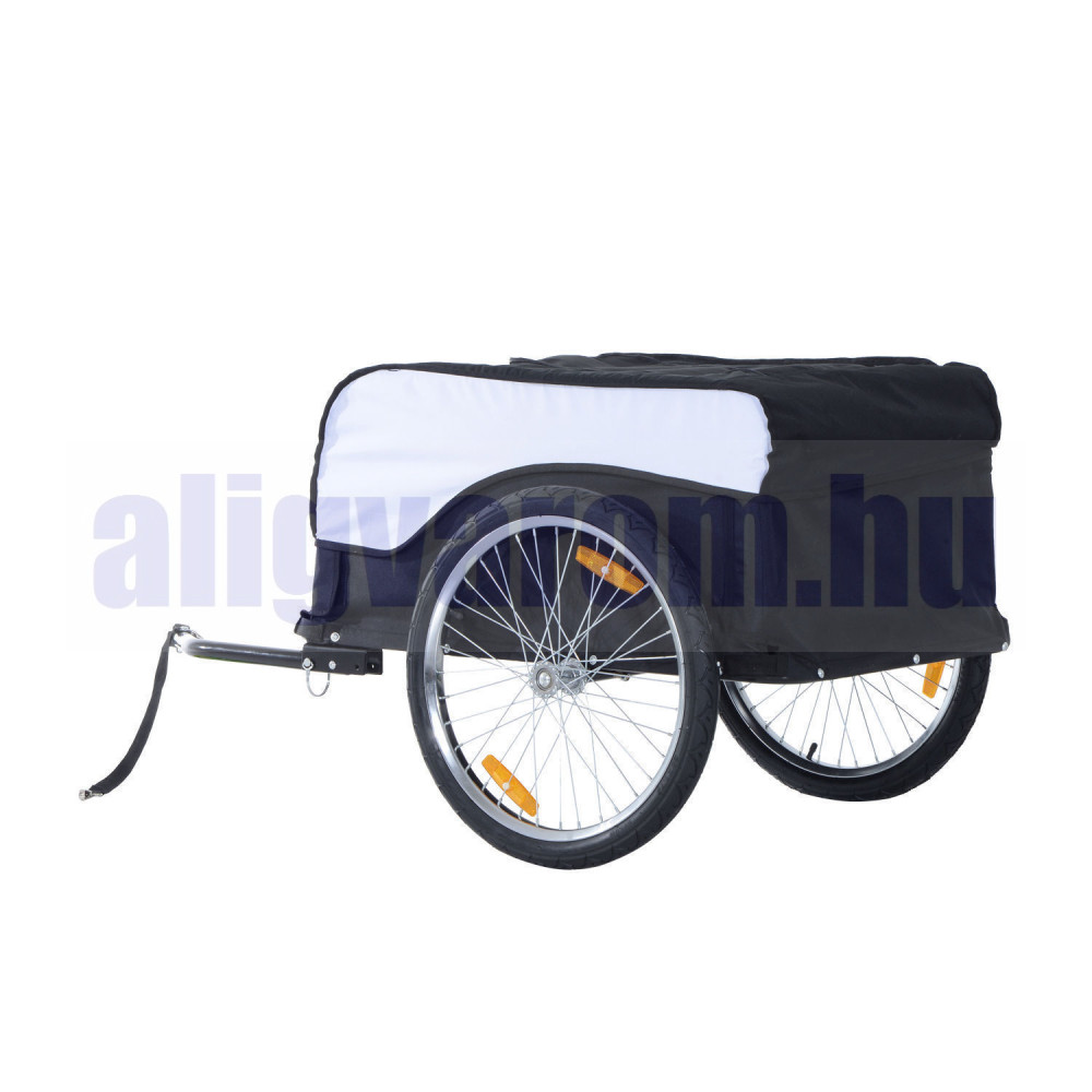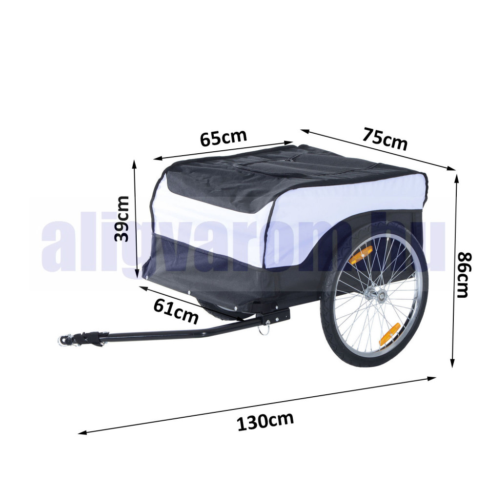 Kerékpár utánfutó szállítódoboz 130x75x86 cm fehér-fekete színben 40 kg teherbírás