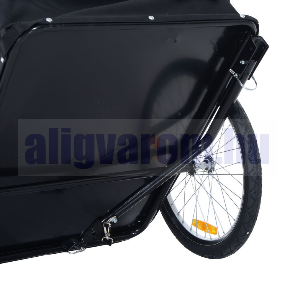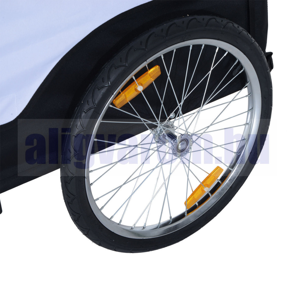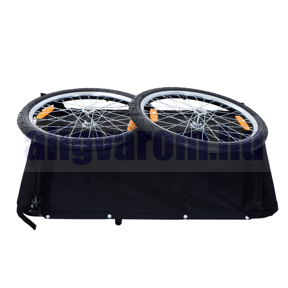 A cipekedésnek vége! A kerékpár utánfutóval a következő bicikli kiránduláshoz szükséges összes használati tárgyat gyorsan és biztonságosan magával viheti. Legyen szó pikniktakaróról, hűtőtáskáról, táskákról egyéb használati tárgyakról. Az univerzális vonóhorog szinte minden kerékpárhoz illeszkedik és gyorsan felszerelhető és leszerelhető. A robusztus acélkeret akár 40 kg-os terhelést is lehetővé tesz. A 20" gumiabroncsokkal a pótkocsi még teljesen megrakodva is könnyen húzható, a felni fényvisszaverők pedig jobb láthatóságot biztosítanak.