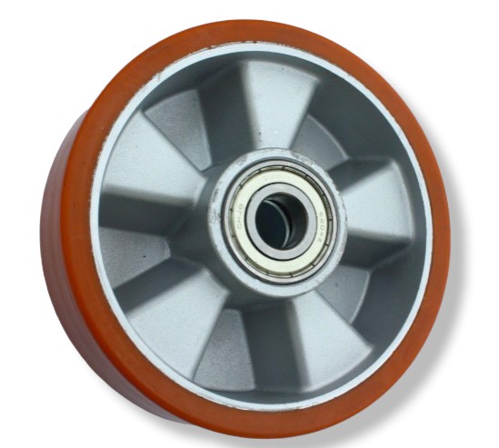 Ø 125 mm kerék raklapmozgató, raklapemelő, béka uretan átmérő 125 mm alumínium ház poliuretán, csapággyal