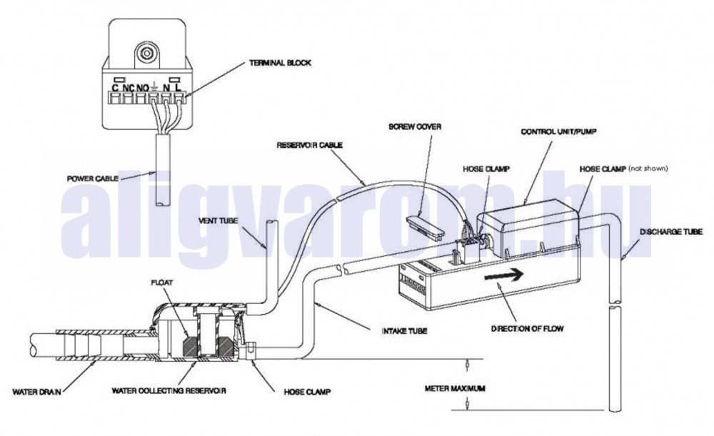 Remek megoldás, ha nem tudjuk elvezetni a klímának a kondenzvizét normálisan, gravitációs úton. Bevezetjük a kicsöpögő vizet ebbe a kis szivattyúba, ő pedig időközönként továbbítja nekünk a szabadba vagy a csatornába.